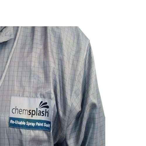 Chemsplash atkārtoti lietojamais izsmidzināmais krāsas tērps ir izgatavots no 68GSM (+/-3GSM) 99% poliestera un 1% oglekļa sieta. Tas ir antistatisks un ar zemu pāļu veidošanos.